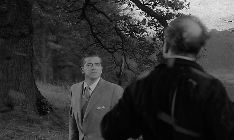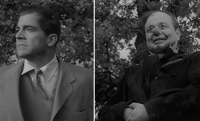 Holden est cet archétype d’homme de science un peu suffisant qu’on aime bien déboulonner dans le fantastique. Cette scène où Karswell grimé en clown déclenche (ou pas...) un orage, si elle n’est pas la première intrusion du surnaturel dans le scénario, marque en tout cas le début des hostilités. La rationalité d’Holden prend en effet une vraie claque ; le doute sinon la peur se lit sur son visage, et le grand psychologue sera obligé de battre en retraite pour se réfugier dans la somptueuse demeure de Karswell. Clown 1 - Professeur 0.